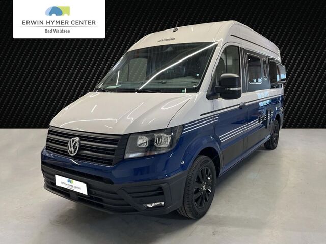 - First Edition Bicolour Deep Ocean Blue (Bicolour Lackierung Uni Candy-Weiß / Deep Ocean Blue, VW Crafter 35 3,5t - 2,0l TDI SCR - 130 KW/177 PS - Euro VI-E, 8-Gang Automatikgetriebe, 17" Leichtmetallräder (Schwarz), Sitzheizung für Fahrer- und Beifahrersitz, getrennt in 3 Stufen regelbar, Radio-Navigationssystem "Discover Media" mit 4 Lautsprechern und 8 Zoll Touch-Display, 2 USB-Schnittstellen (Typ C) in der Armaturentafel inkl. "Streaming & Internet" und Sprachbedienung, Dieselheizung Truma Combi D 6 E mit integriertem 10 l Warmwasserboiler, Heizstufen 2000/ 4000/ 6000 Watt und Elektroheizstab, Heizstufen 900/ 1800 Watt, Matratzentopper, Zwei zusätzliche Multifunktions-Akkuleuchten, Zwei Kissen farblich passend zum Wohnraum, Faltverdunklung Frontscheibe & Verdunklung Seitenscheiben Fahrerhaus, Bettenbau für Sitzgruppe inkl. Zusatzpolster, Magnetischer Vergrößerungsspiegel)
